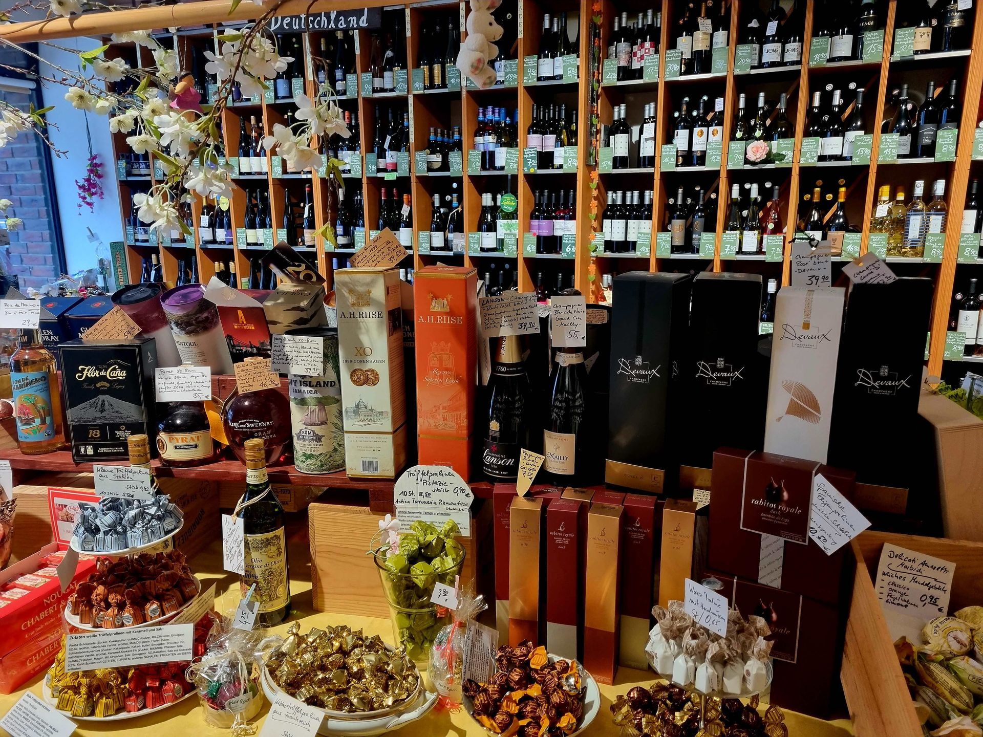 Lassen Sie sich von besonderen Köstlichkeiten verwöhnen, wie z.B. Grappa- und Trüffelpralinen aus dem Piemont, Feigenpralinen aus Spanien, Marzipan aus Dänemark, Nougat aus der Provence, schwedische Lakritze oder belgische Premiumschokolade.