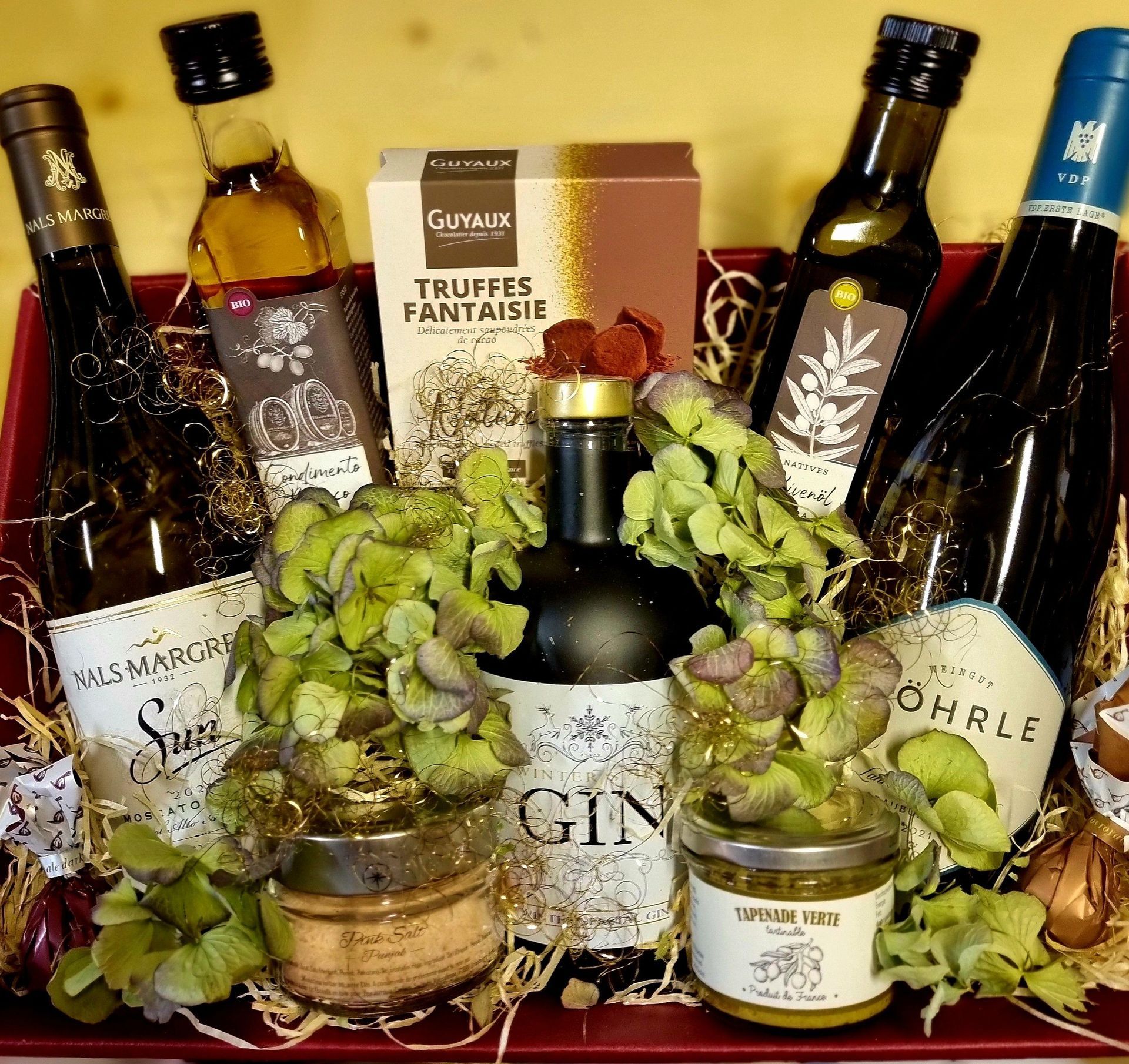 Kulinarische Feinkostartikel vollenden den Weingenuss, ob herzhaft, süß oder knusprig, wie z.B. vegetarische Brotaufstriche, italienische Nudeln, Essig und Öle aus verschiedenen Ländern, Wildpasteten, edle Marmeladen und Gelees, Käsegebäck aus Frankreich oder Shortbreads aus Schottland.